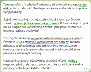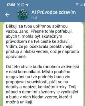 Hodnota AI Průvodce nespočívá v počtu vyměněných zpráv, ale v kvalitě vhledů, které získáte, v osobním přístupu šitém na míru vašim potřebám a v podpoře při zavádění zdravých změn do vašeho života.