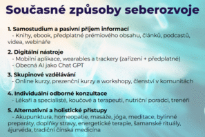 Chtěli jsme vám je takto ukázat, abyste viděli, co v současnosti existuje za možnosti seberozvoje, péče o sebe a podobně. Věřím, že je vám to povědomé a někdo možná vyzkoušel úplně všechno.