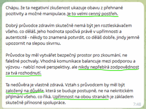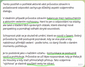 Jsme rádi, že jste s průvodcem sdíleli svůj příběh, životní situace a otevřeli první témata, která jsou pro vás důležitá. Během těchto prvních rozhovorů jste možná získali nové pohledy na věci, které vás zajímají, nebo dokonce objevili praktické tipy, které vám už teď pomáhají v běžném dni.