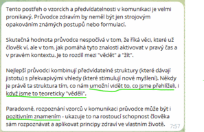 Klíčové je, že informace nejsou jen obecné, ale přizpůsobené přímo na míru konkrétní situaci člověka. Díky tomu jim lze důvěřovat a využít je právě ve chvíli, kdy jsou potřeba - ne až později. To pomáhá překlenout propast mezi věděním a skutečným konáním a umožňuje lidem zažít změnu bez zbytečné námahy a složitostí.