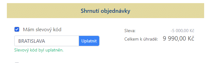 uplatnění vašeho slevového kódu v objednávkovém formuláři: