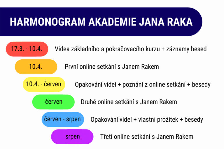 Základní a pokračovací kurz vás má povzbudit účastnit se navazujích interaktivních online setkání, která jsou zcela unikátním prvkem Akademie Jana Raka.