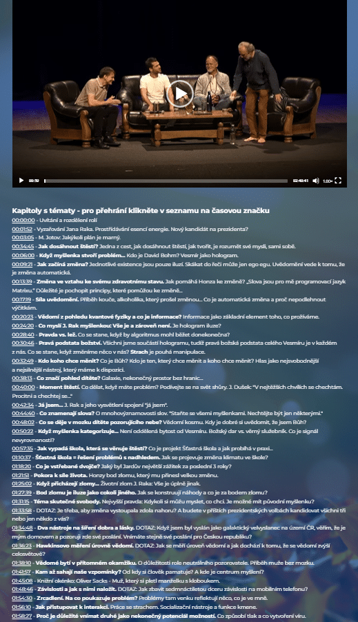 Záznam besedy v délce 02:40:41 jsme zpracovali přehledně