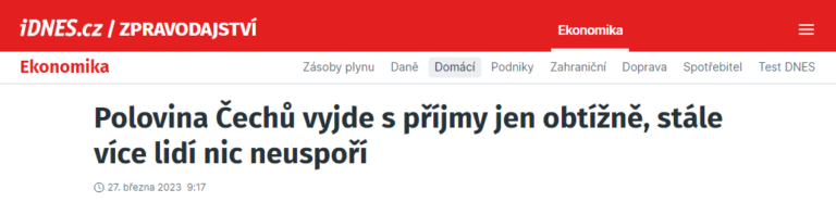 Více než polovina Čechů obtížně vychází s příjmy. Počet lidí v těžké ekonomické situaci tak od loňského června vzrostl. Vyplývá to z analýzy Centra pro výzkum veřejného mínění (CVVM).